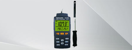 TM-741 is a low cost and pocket size model, it measures air speed and temperature, and ideal for spot measurements.
