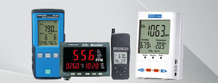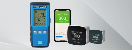 The measurement for CO2 is used for the air exchange rate of total heat exchangers or other ventilation fans or systems and the measurement for temperature and humidity is used to estimate the dehumidification effect of dehumidifiers.