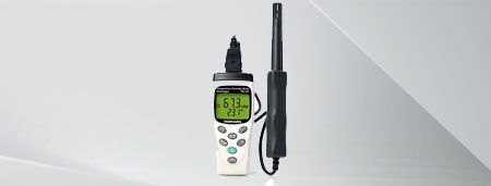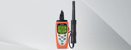Dual display of temperature and humidity. Select between different temperature scale (°C/°F). DEW-POINT and WET-BULB temperature measurement and stores up to 200 reading.